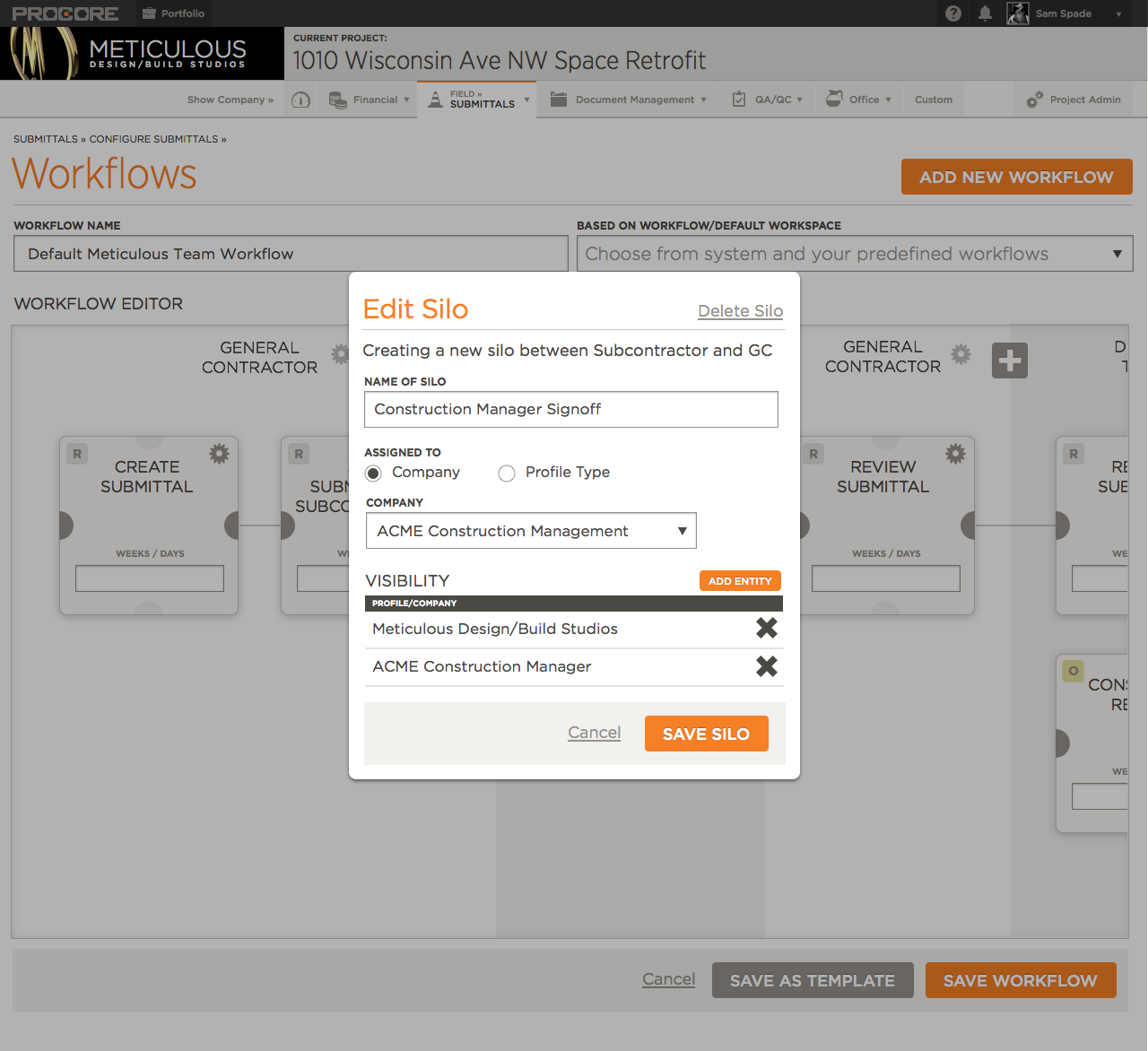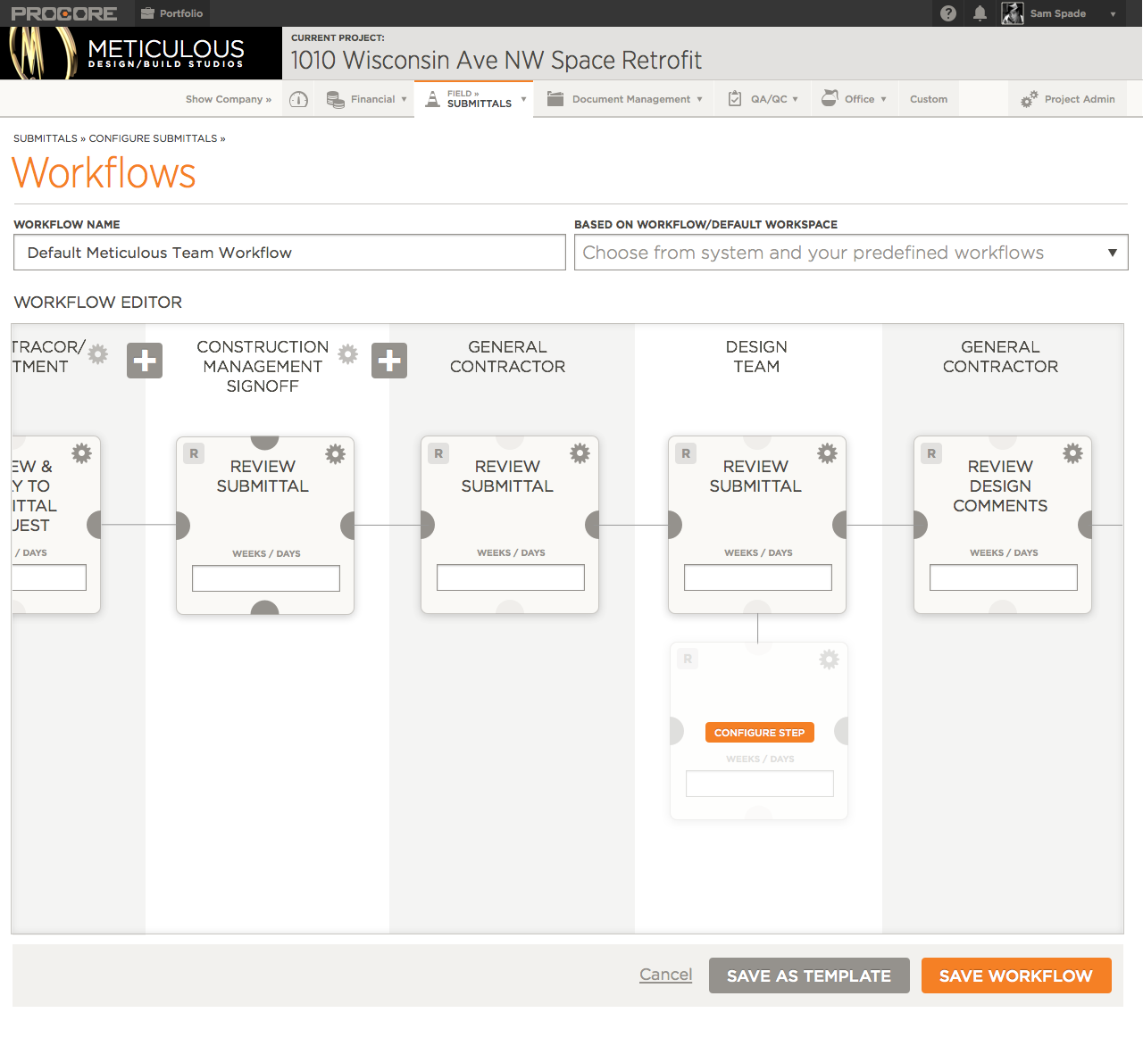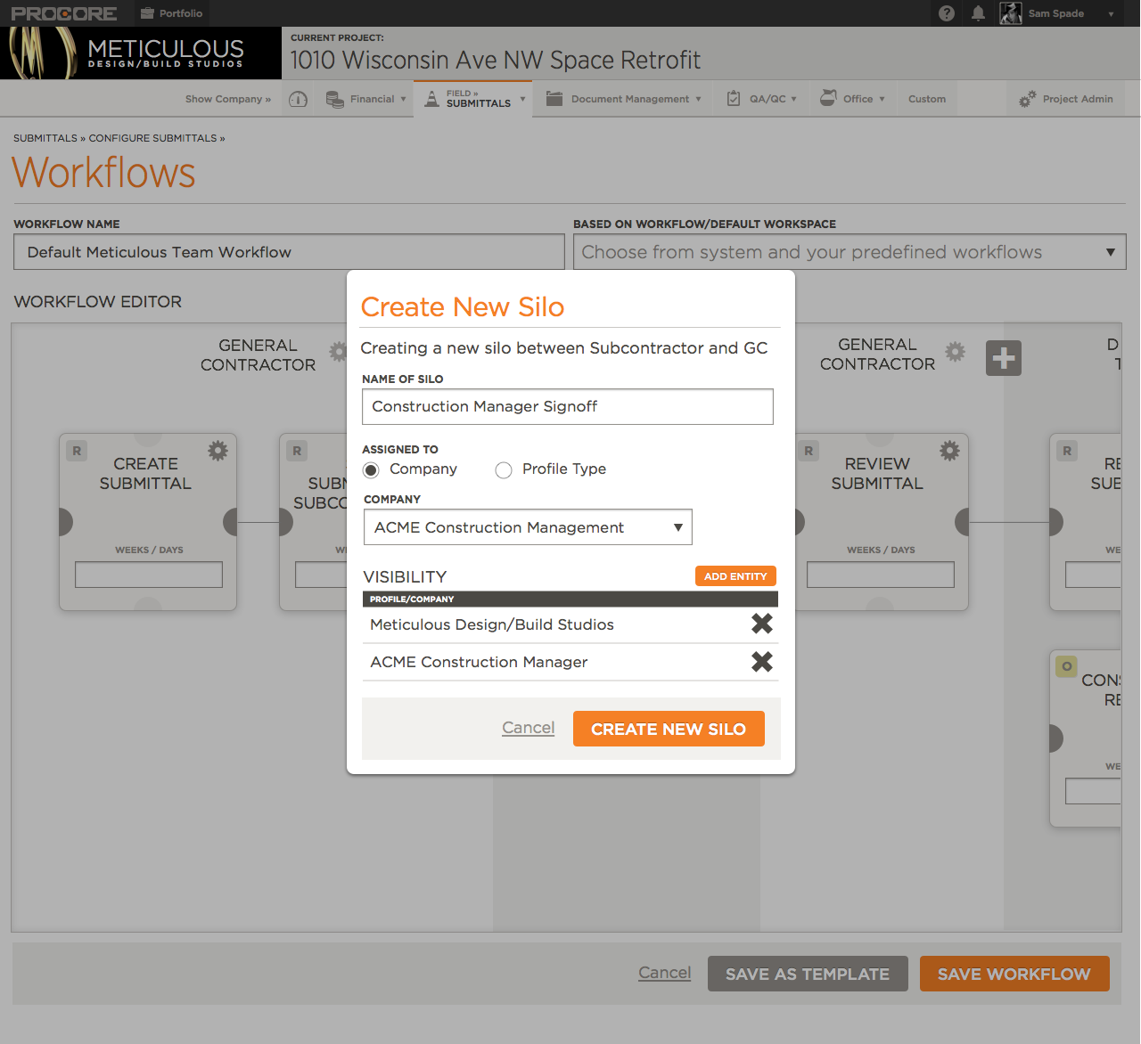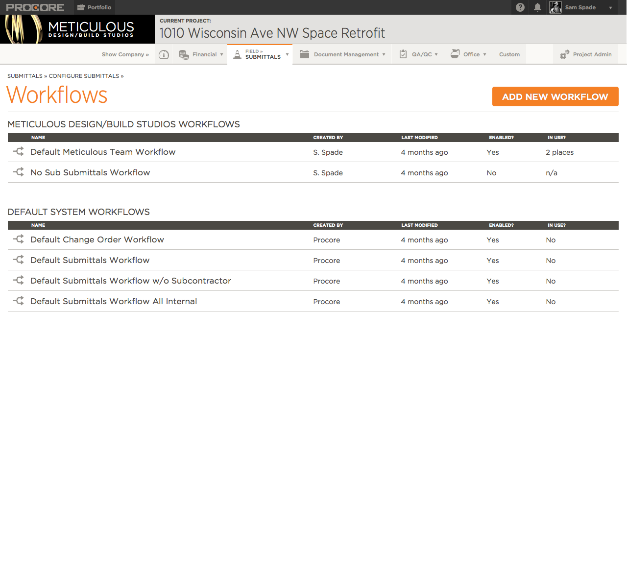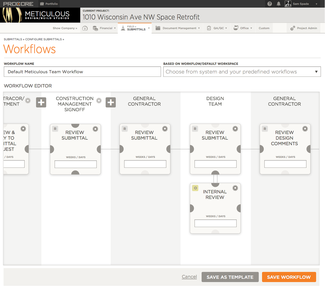 Workflow Management was a large part of the Submittals Module.