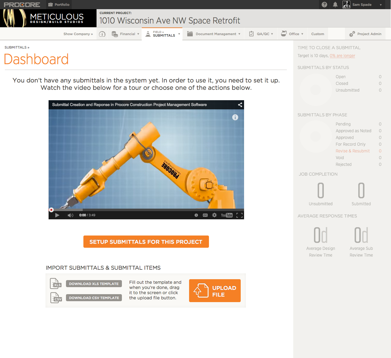 Dashboards are often thought of as complete items with all the data present, but our first experiences with them are as empty canvases, waiting to be filled. Without direction, these can become blockers for many users. We took a look at how we could improve the first time experience and provide some non-blocking training to the users of Procore's Submittals module.